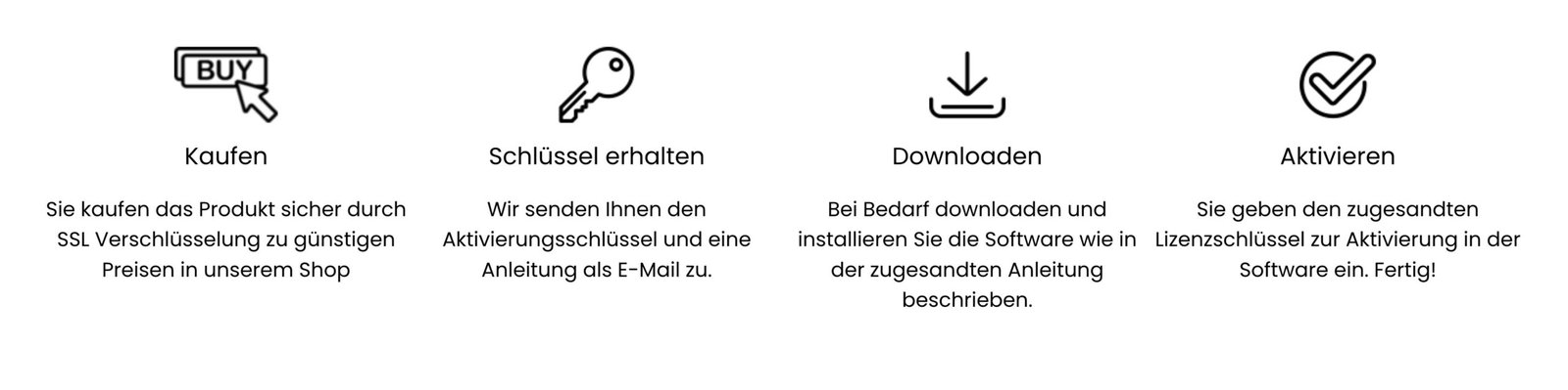 Sie bekommen Ihre Lizenzschlüssel in der Regel sofort nach der Bestellung per E‑Mail zugeschickt, inklusive Downloadlink und Installationsanleitung. Wenn es bei der Aktivierung oder Installation Fragen gibt, unterstützt Sie unser geschulter Support per E‑Mail und Kontaktformular – schnell, freundlich und auf Deutsch. Dieser Service ist für Sie selbstverständlich kostenlos.